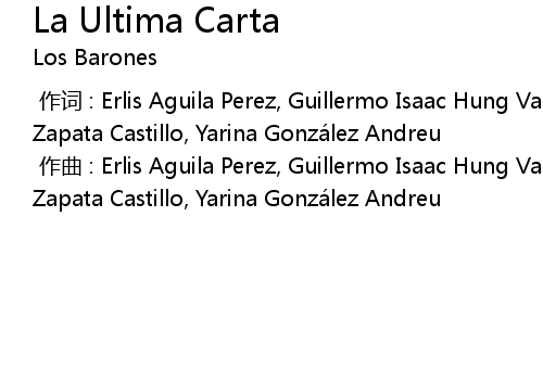 | [00:00.000] | zuo qu : Erlis Aguila Perez, Guillermo Isaac Hung Valerino, Ariam Zapata Castillo, Yarina Gonza lez Andreu |
