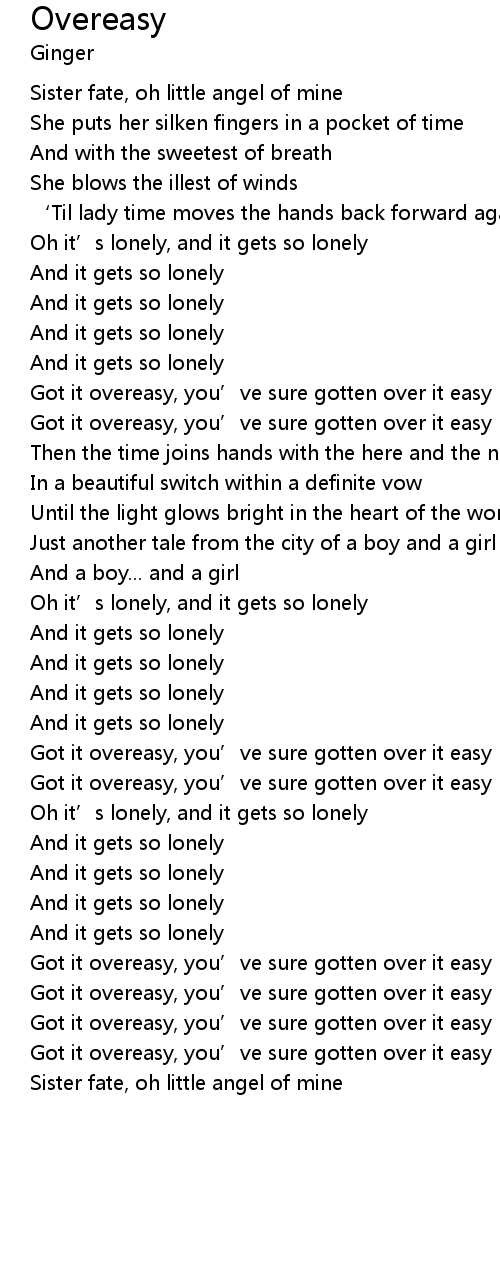 | Got it overeasy, you’ve sure gotten over it easy | |