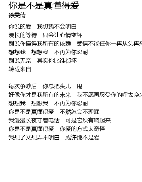 | 你是不是真懂得爱 不然怎会不理睬 | |