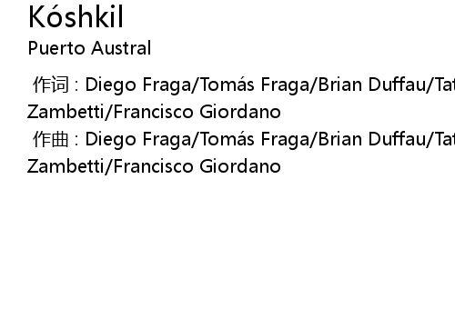 | [00:00.000] | 作词 : Diego Fraga/Tomás Fraga/Brian Duffau/Tato Zambetti/Francisco Giordano |