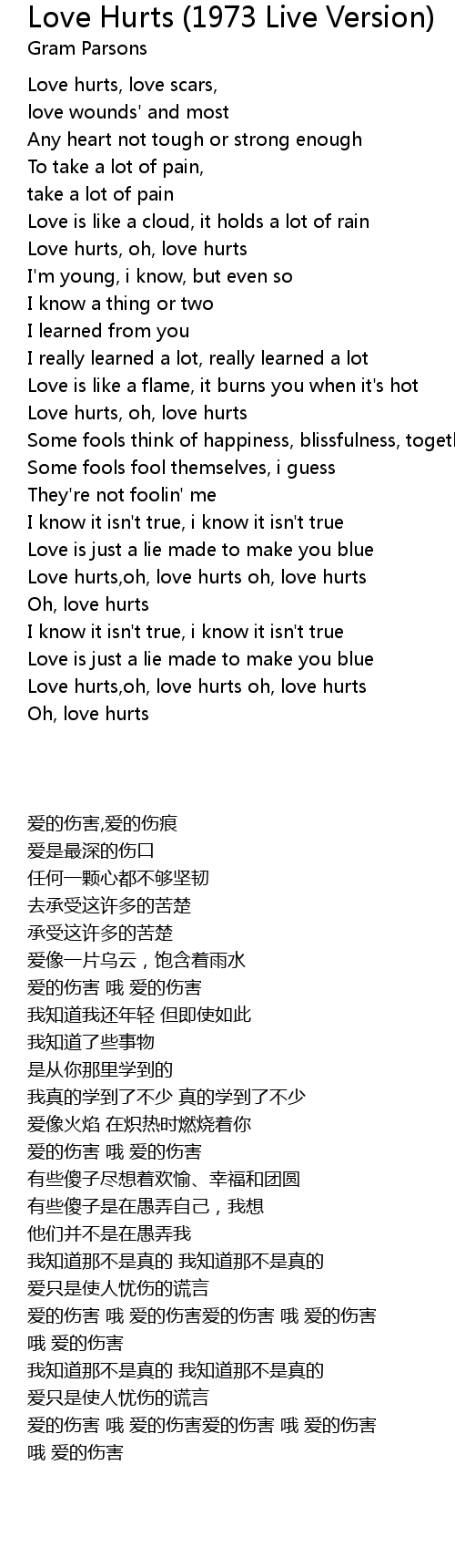 [02:31.500] Love hurts,oh, love hurts oh, love hurts