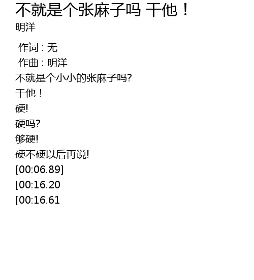| [00:00.00] | 不就是个小小的张麻子吗? |