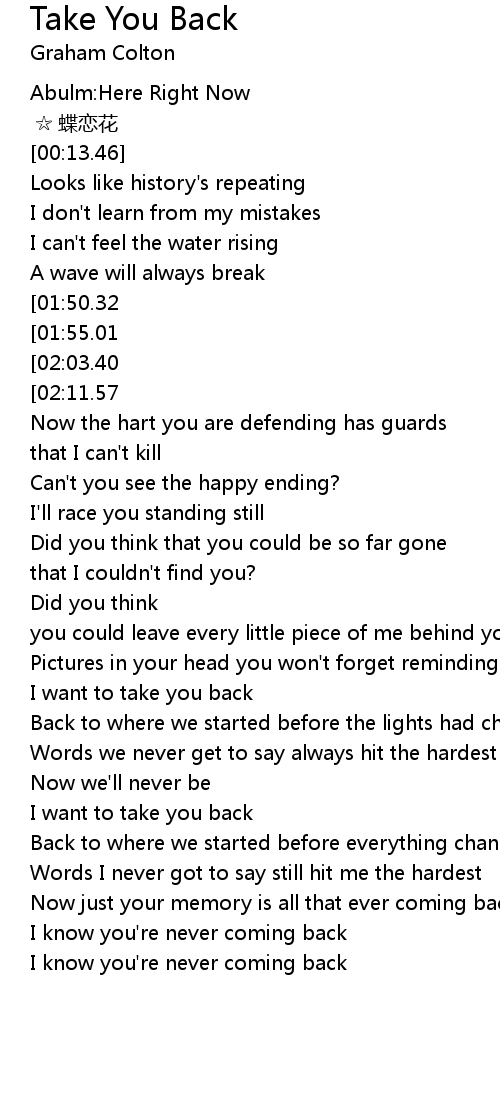 | [00:46.59][01:50.32] | I want to take you back |