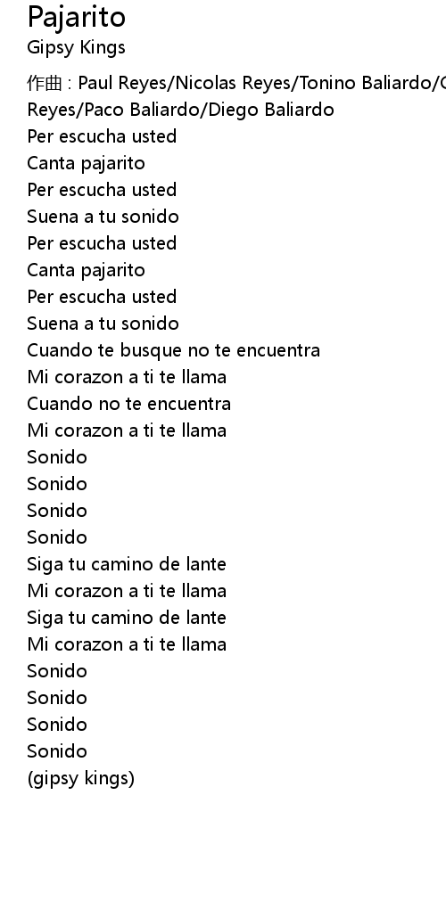 | 作曲 : Paul Reyes/Nicolas Reyes/Tonino Baliardo/Georges "Baule" Reyes/Canut Reyes/Paco Baliardo/Diego Baliardo | |