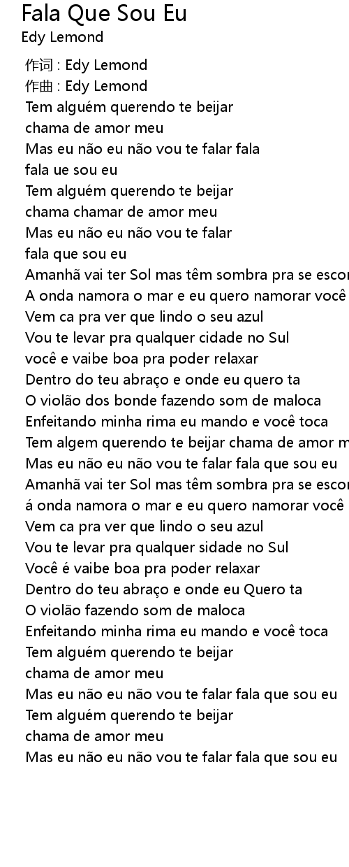 | [01:34.591] | Mas eu n o eu n o vou te falar fala que sou eu |