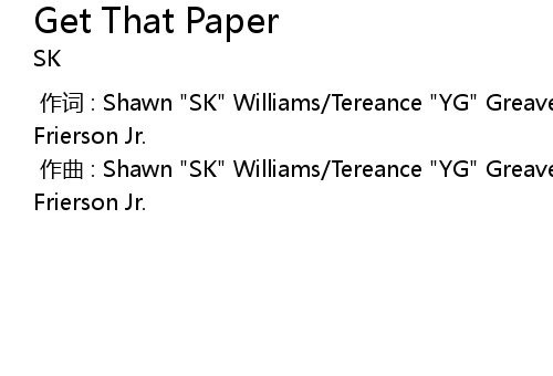 | [00:00.000] | zuò qǔ : Shawn " SK" Williams Tereance " YG" Greaves R. Frierson H. Frierson Jr. |