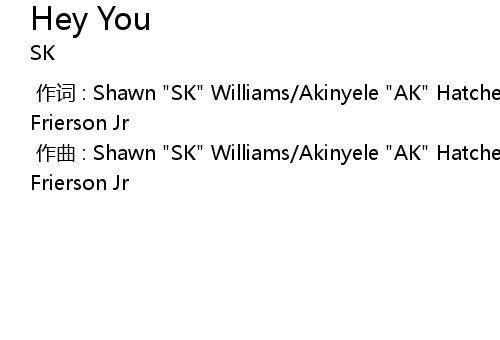 | [00:00.000] | zuò cí : Shawn " SK" Williams Akinyele " AK" Hatchell R. Frierson H. Frierson Jr |