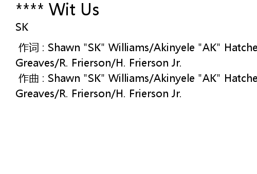 | [00:00.000] | zuò qǔ : Shawn " SK" Williams Akinyele " AK" Hatchell Terence " YG" Greaves R. Frierson H. Frierson Jr. |