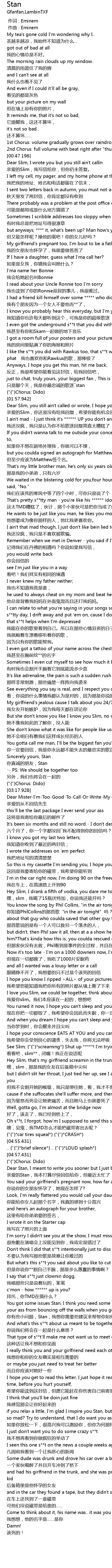 | [01:32.953] | just to chat, truly yours, your biggest fan,This is Stan |