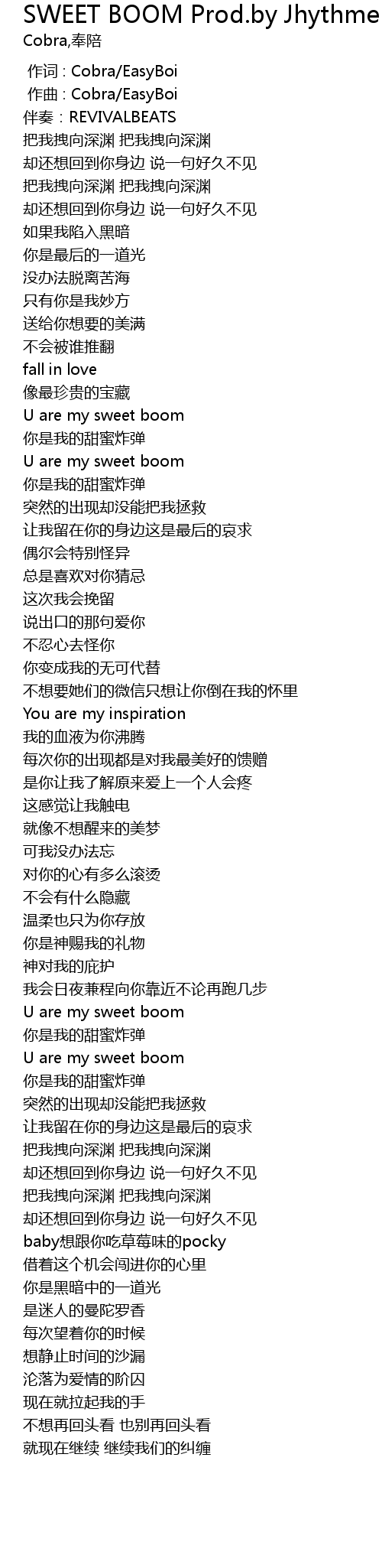 | [01:43.930] | 你是我的甜蜜炸弹 |