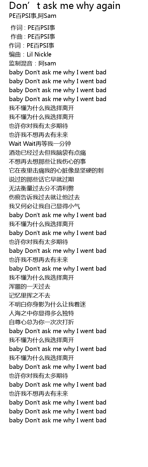 | [01:38.453] | baby Don' t ask me why I went bad |