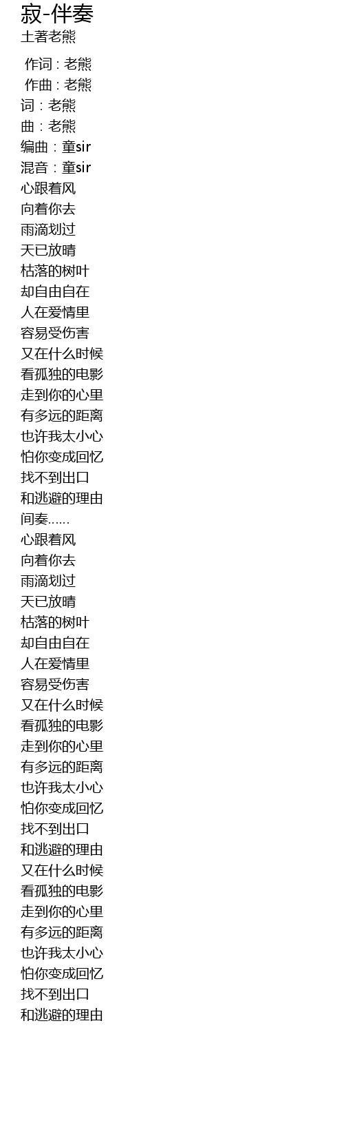 作词 : 老熊 |