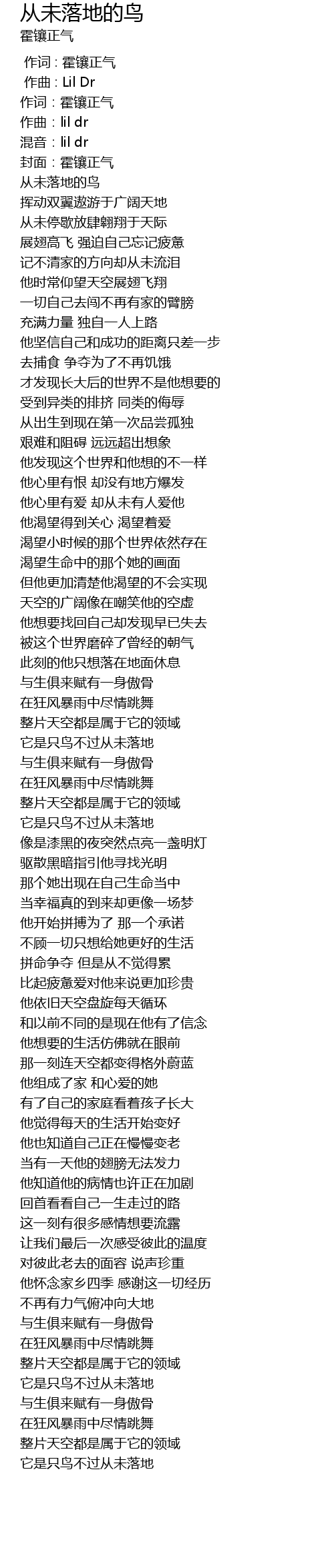 | [00:00.000] | 作词 : 霍镶正气 |