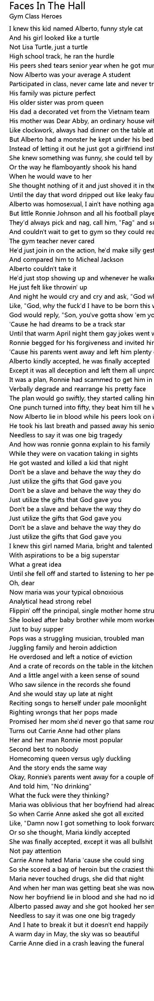Until the day that word dripped out like leaky faucet |