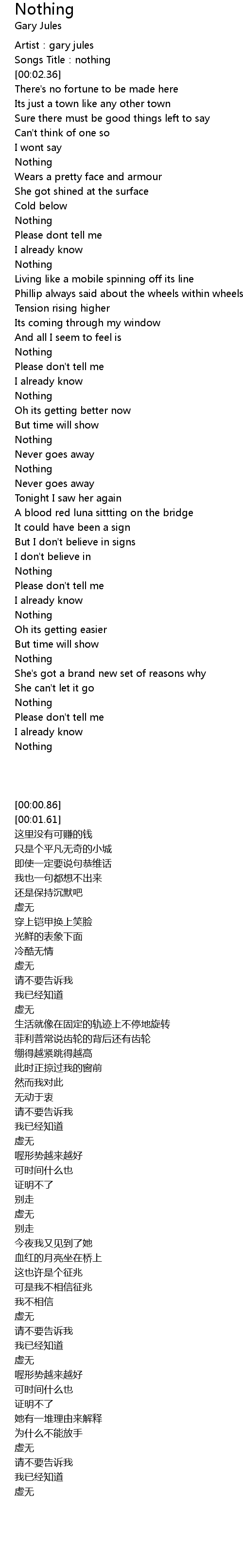 | [00:01.61] | Songs Title:nothing |