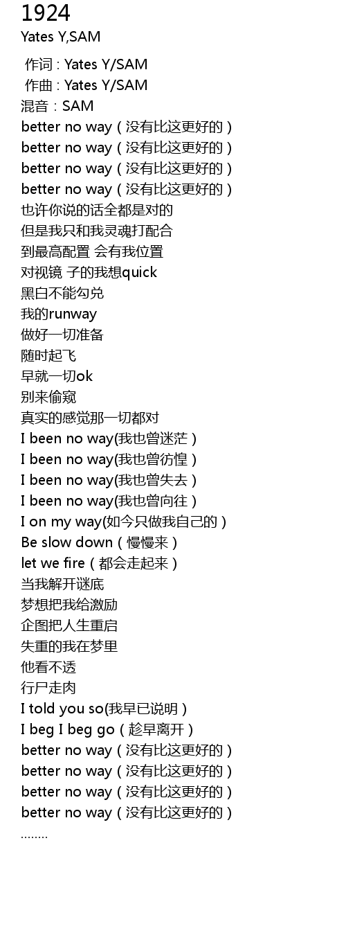 | [00:00.000] | 作词 : Yates Y/SAM |