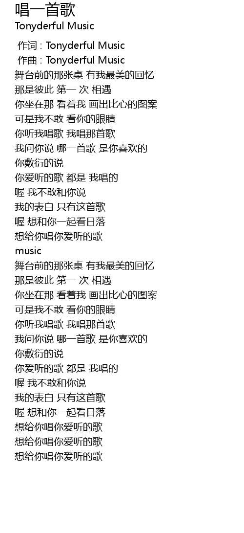 | [00:01.000] | zuo qu : Tonyderful Music |