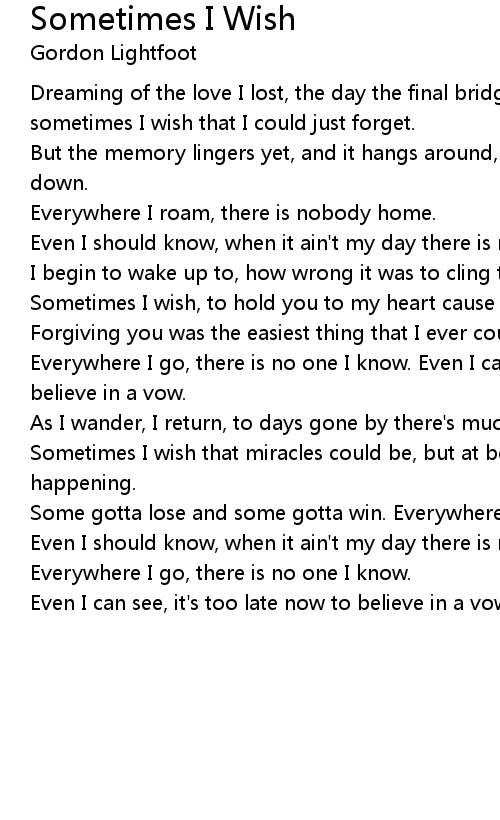 Song Sometimes I Wish