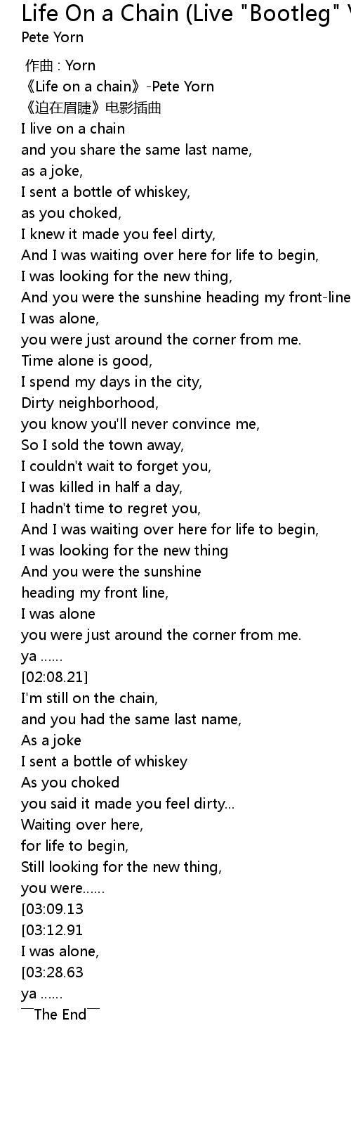 | [00:00.72] | 《Life on a chain》-Pete Yorn |