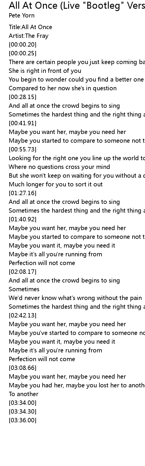 All At Once (Live "Bootleg" Version - Acoustic) Lyrics