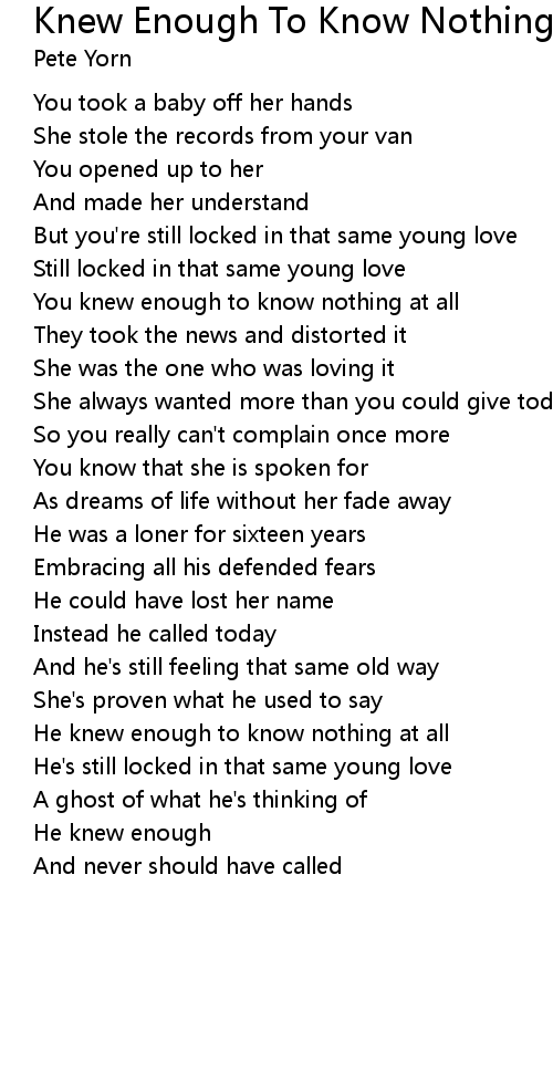 You knew enough to know nothing at all |