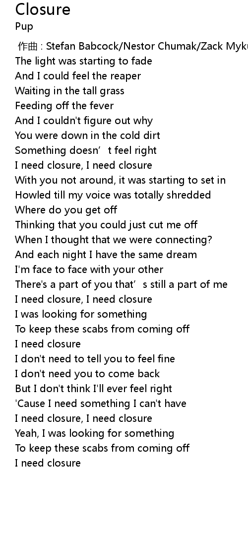 | [00:31.90] | I need closure, I need closure |