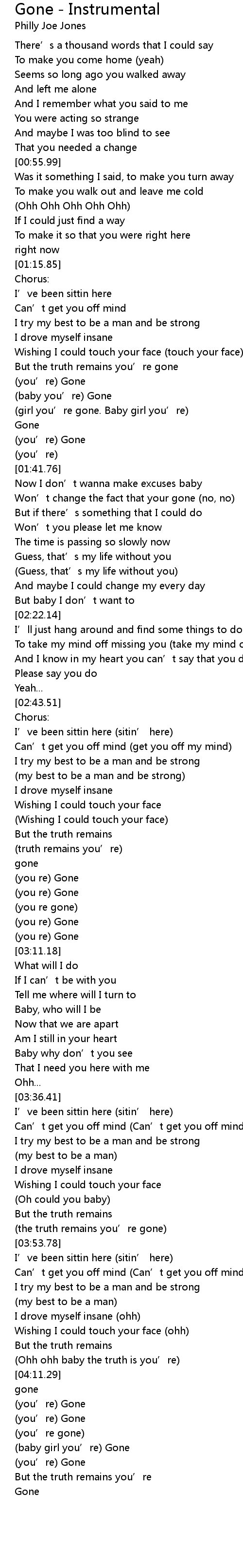 | [01:36.56] | girl you' re gone. Baby girl you' re |