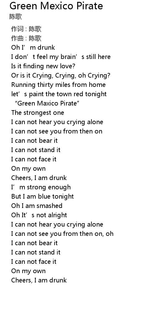 | [00:59.42] | “Green Maxico Pirate” |