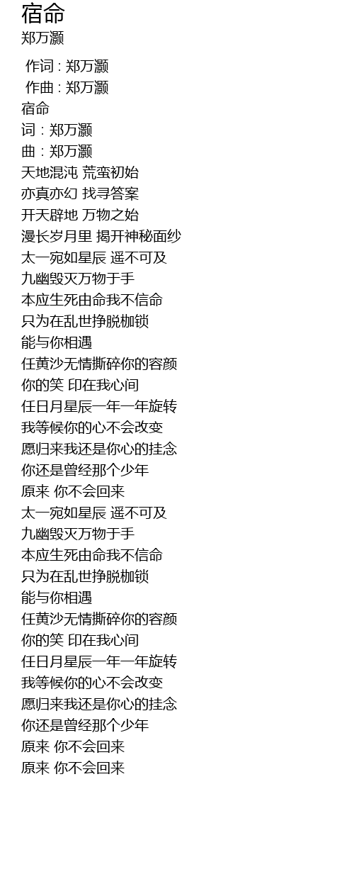 | [00:00.000] | 作词 : 郑万灏 |