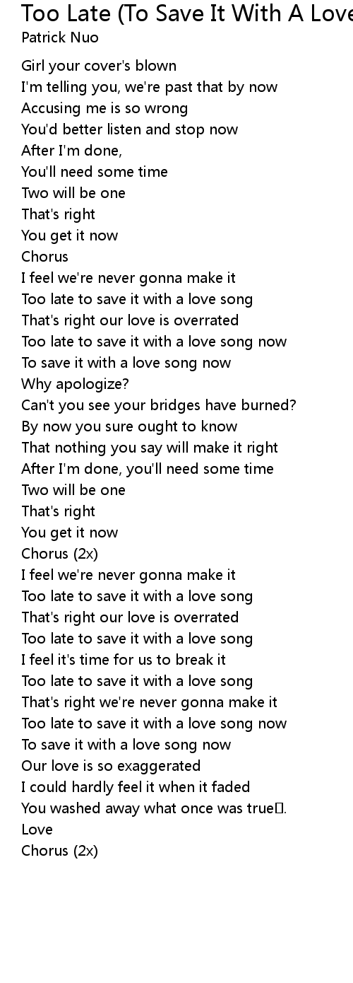 | Song | Too Late (To Save It With A Lovesong) - Radio Version |