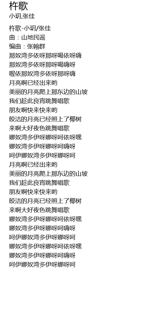 | [01:15.196] | 娜奴湾多伊呀娜呀呵依呀嘿 |