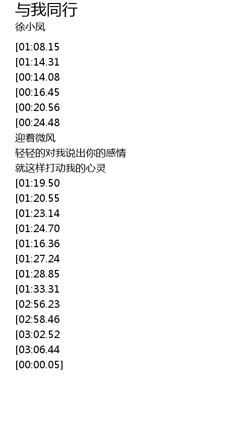 | [01:49.65][01:08.15][00:01.72] | -= 徐小凤《 与我同行 》=- |