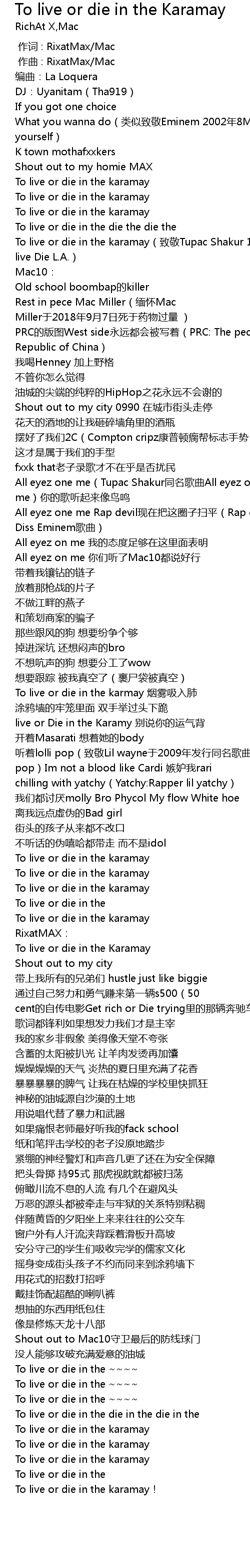 | [00:31.368] | To live or die in the karamay(致敬Tupac Shakur 1996年歌曲To live Die L.A.) |