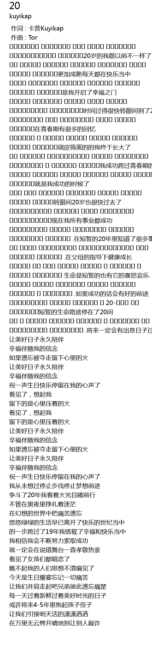 | [00:00.000] | zuò cí : kǎ pǔ Kuyikap |