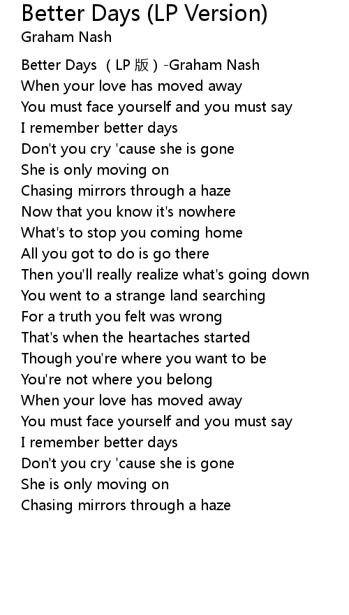 | [00:00.336] | Better Days LP bǎn Graham Nash |