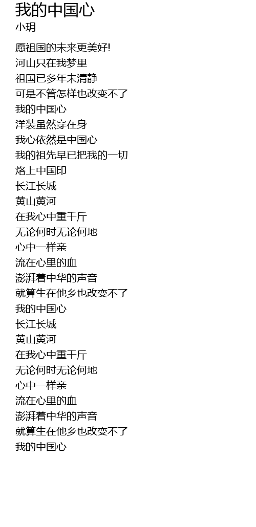 | [03:50.77] | wǒ de zhōng guó xīn |