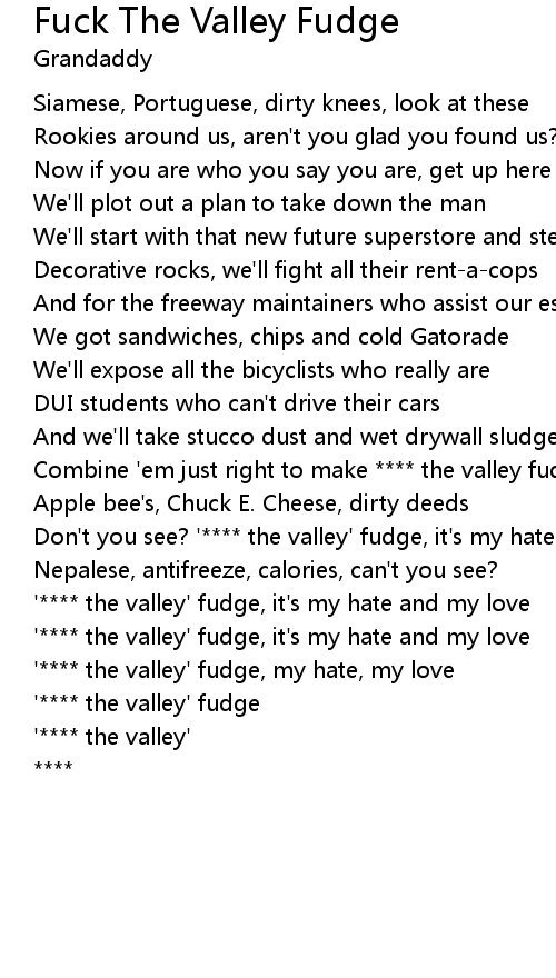 Don't you see? '**** the valley' fudge, it's my hate, my love |