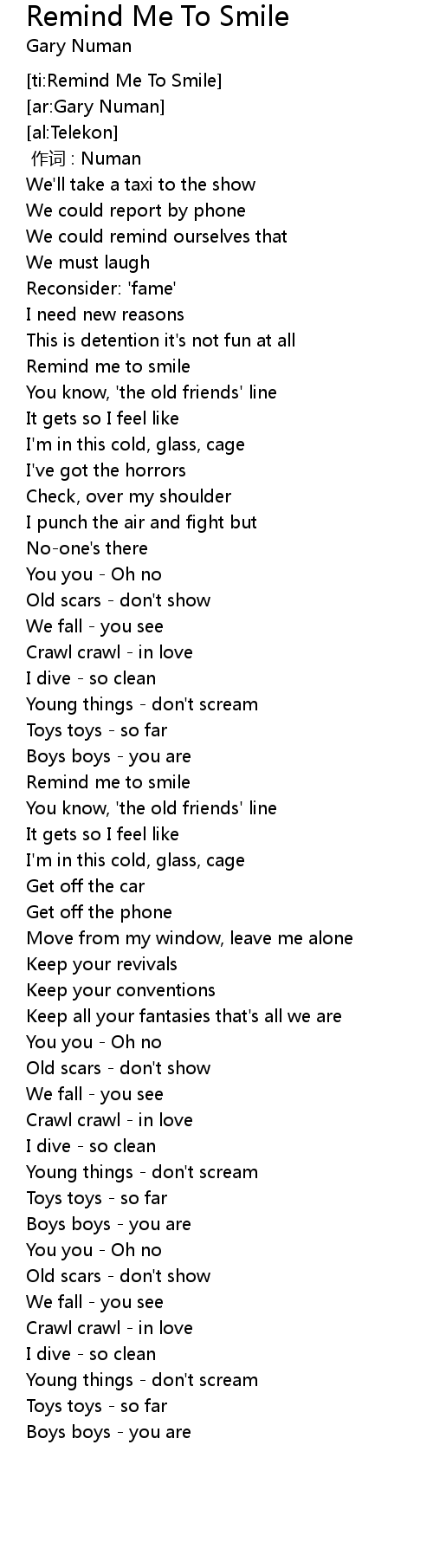 | [02:17.07] | Remind me to smile |