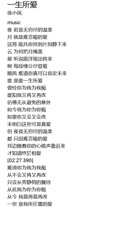| [02:29.300] | 难得你为我为我痴 |