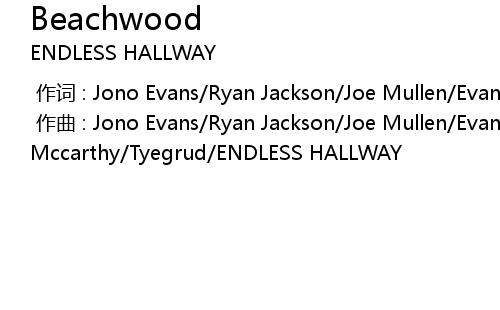 | [00:00.000] | zuo qu : Jono Evans Ryan Jackson Joe Mullen Evan Mccarthy Tyegrud ENDLESS HALLWAY |