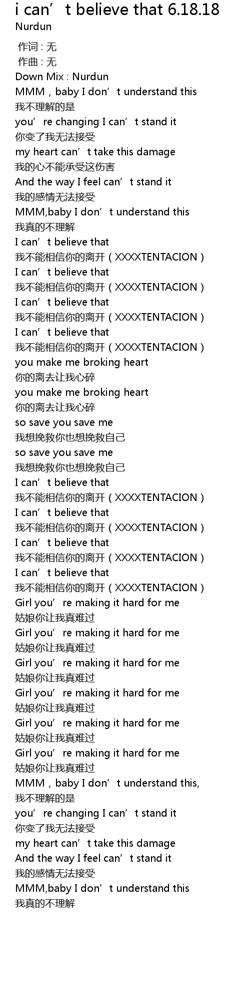 | [01:34.548] | wo bu neng xiang xin ni de li kai XXXXTENTACION |