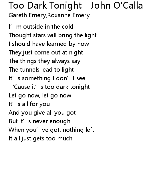 | Song | Too Dark Tonight - John O'Callaghan Remix |
