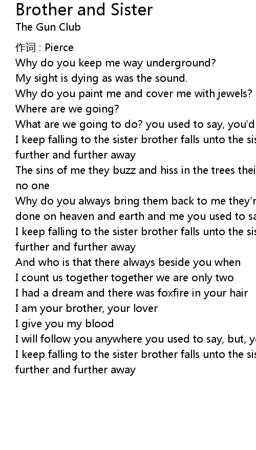 | I keep falling to the sister brother falls unto the sister keep getting pushed further and further away | |