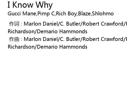 | [00:00.000] | 作词 : Marlon Daniel/C. Butler/Robert Crawford/Radric Davis/M. Richardson/Demario Hammonds |