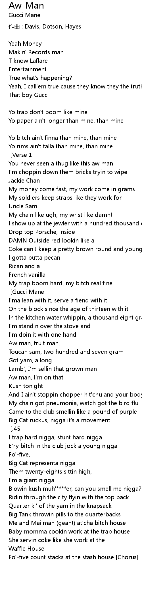 | Poppi on the way, we call it crunch time Chorus Gucci Mane | |