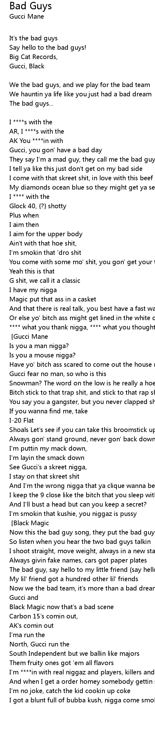 Wired for jaw, so yo' ass can't talk nigga [Chorus] [Gucci Mane] |