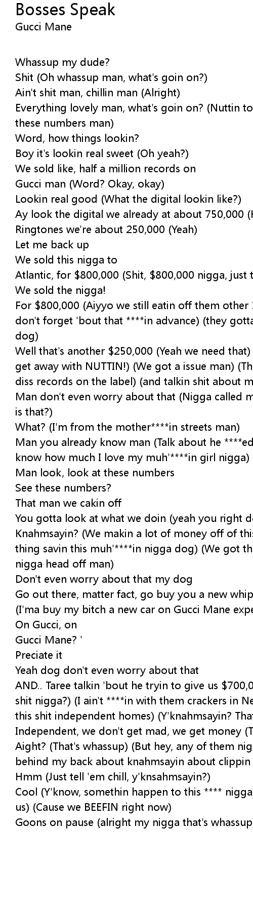 AND.. Taree talkin 'bout he tryin to give us $700,000 for some old shit (for old shit nigga?) (I ain't ****in with them crackers in New York) (We puttin out all this shit independent homes) (Y'knahmsayin? That's how we EATIN right now) |