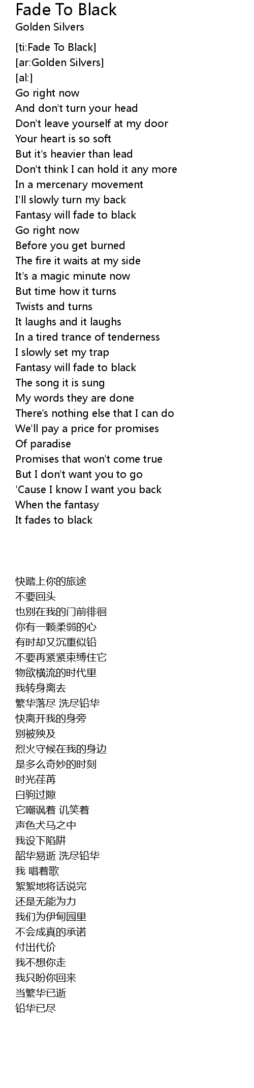 [ti:Fade To Black] |
