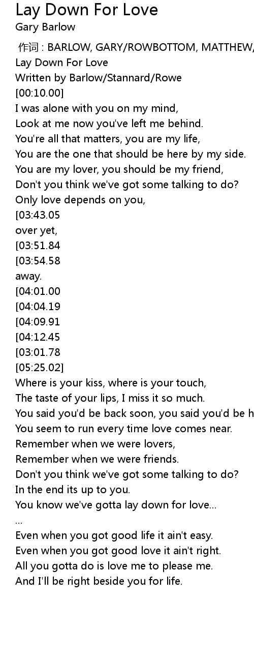 | [04:51.66] | You know we' ve gotta lay down for love... |