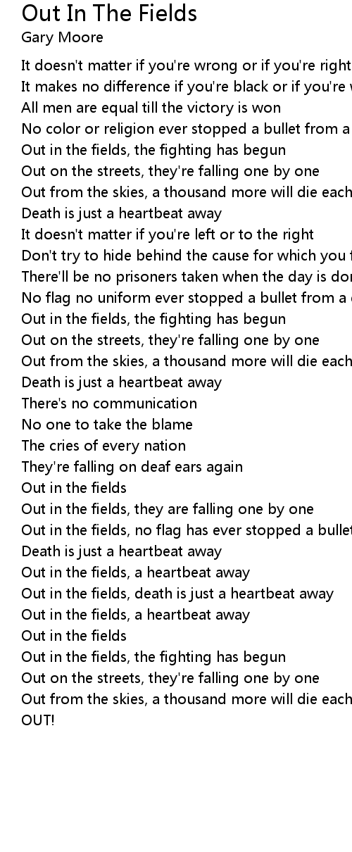 Out in the fields, no flag has ever stopped a bullet from a gun |